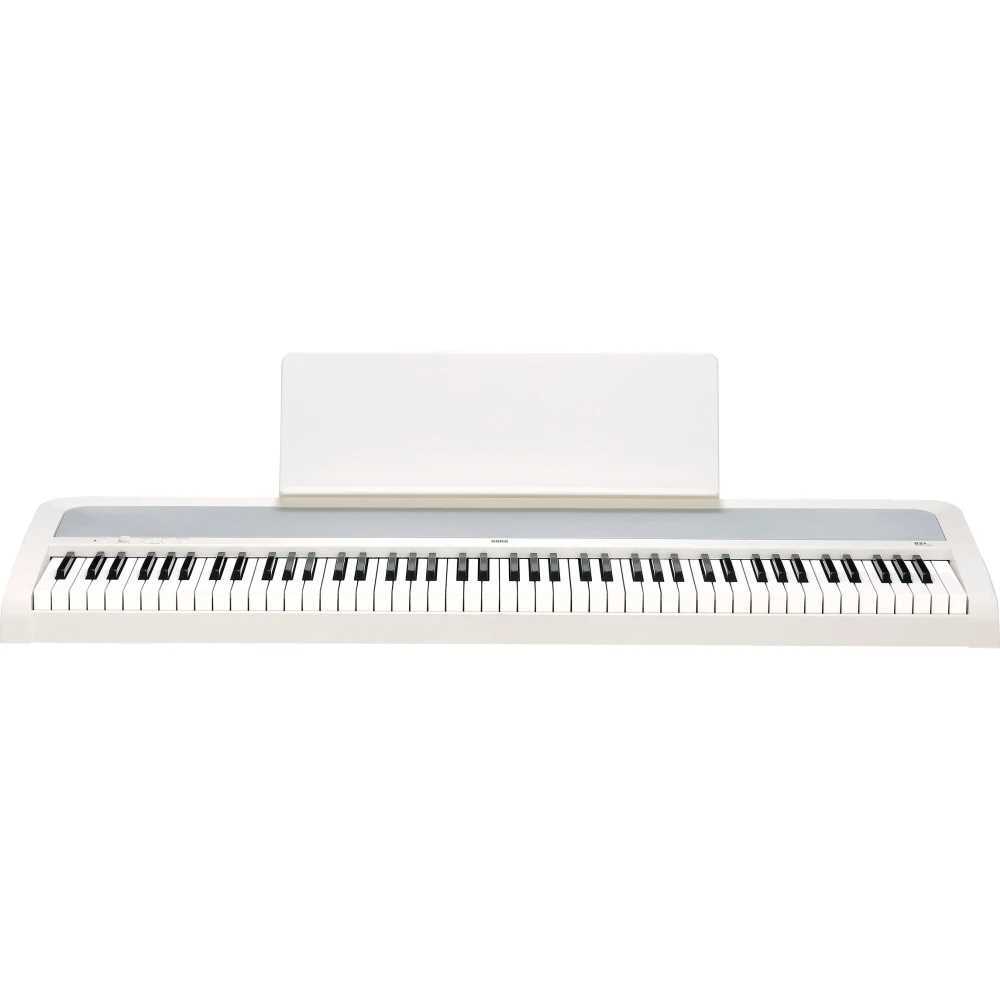 B2+ är ett kompakt digitalpiano från Korg med 88 vägda tangenter, 12 instrumentljud och inbyggda högtalare. Pianot levereras med notställ, sustainpedal och nätadapter. Köp till benställningen STB1-WH för ett mer möbellikt utseende.