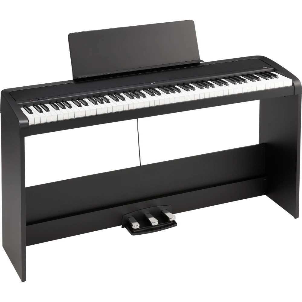 B2+SP är ett kompakt digitalpiano från Korg med 88 vägda tangenter, 12 instrumentljud och inbyggda högtalare. Pianot levereras med notställ, benställningen STB1 samt pedalenheten PU-2 för ett möbellikt utseende.