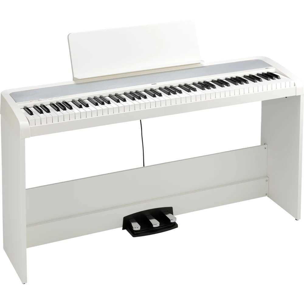 B2+SP är ett kompakt digitalpiano från Korg med 88 vägda tangenter, 12 instrumentljud och inbyggda högtalare. Pianot levereras med notställ, benställningen STB1 samt pedalenheten PU-2 för ett möbellikt utseende.