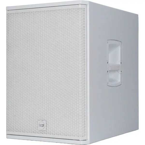 SUB15AX, här i vitt utförande, är en kraftfull aktiv PA-subwoofer från italienska RCF. Basen har en 15" woofer, ett slutsteg på hela 2200W (133db SPL), fjärrstyrning via Bluetooth och återger frekvenser mellan 35-400 Hz.